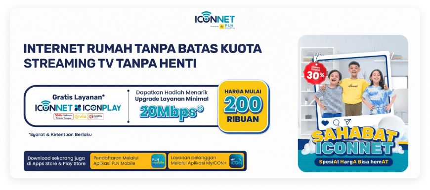 ICONNET adalah layanan internet broadband berbasis jaringan full fiber optic yang dirancang untuk memenuhi kebutuhan akses internet dan multimedia, baik bagi rumah tangga maupun bisnis. Dengan pilihan paket yang fleksibel, ICONNET menyediakan koneksi internet cepat, stabil, dan tepercaya dari PLN.